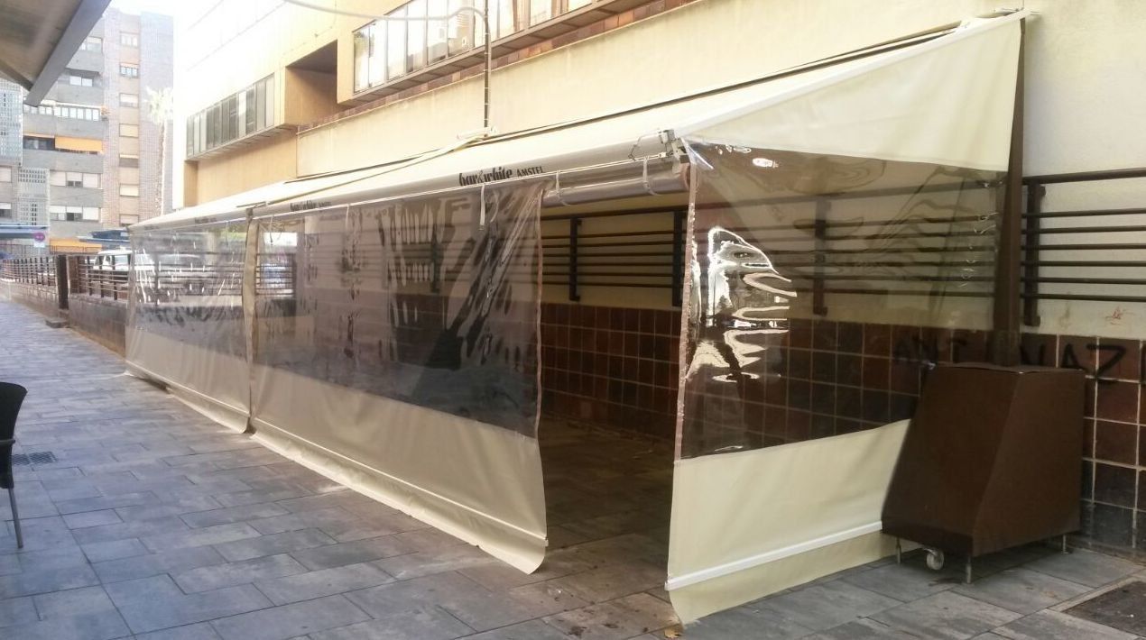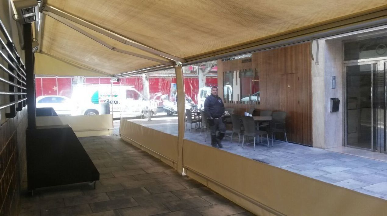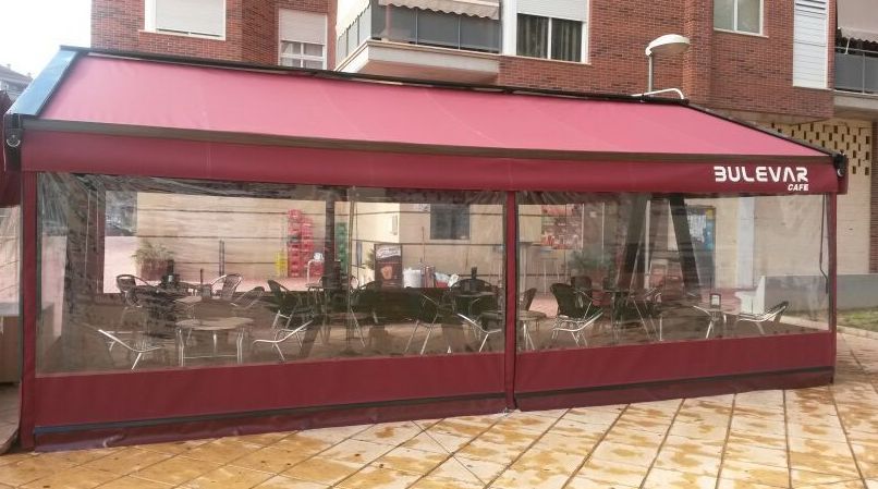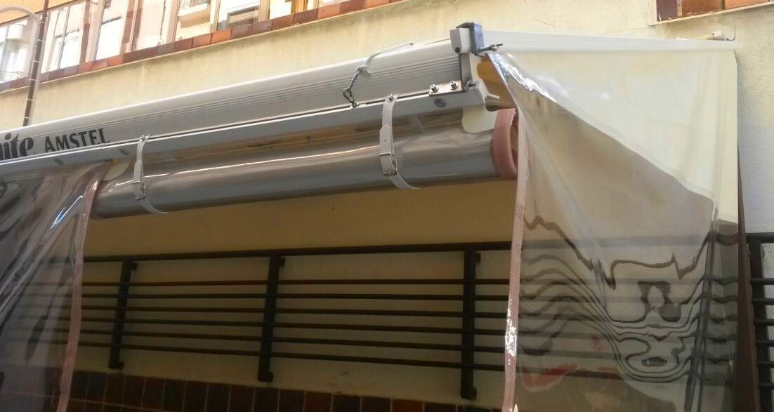 Cerramiento de terrazas para uso invernal con verticales cortavientos con ventana cristal que deja pasar luz y sol, al mismo tiempo tiene vistas al exterior