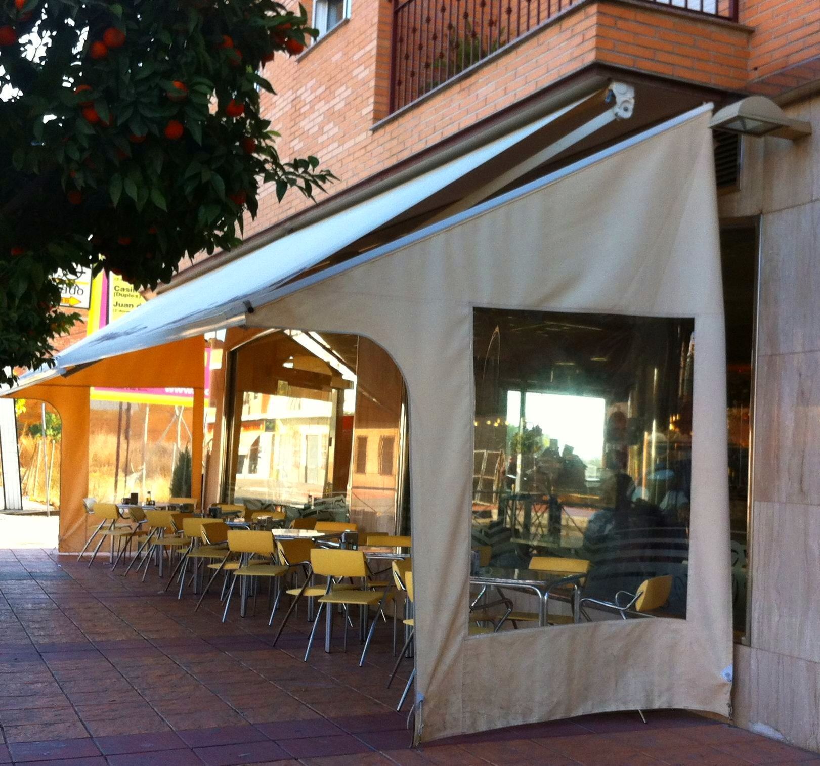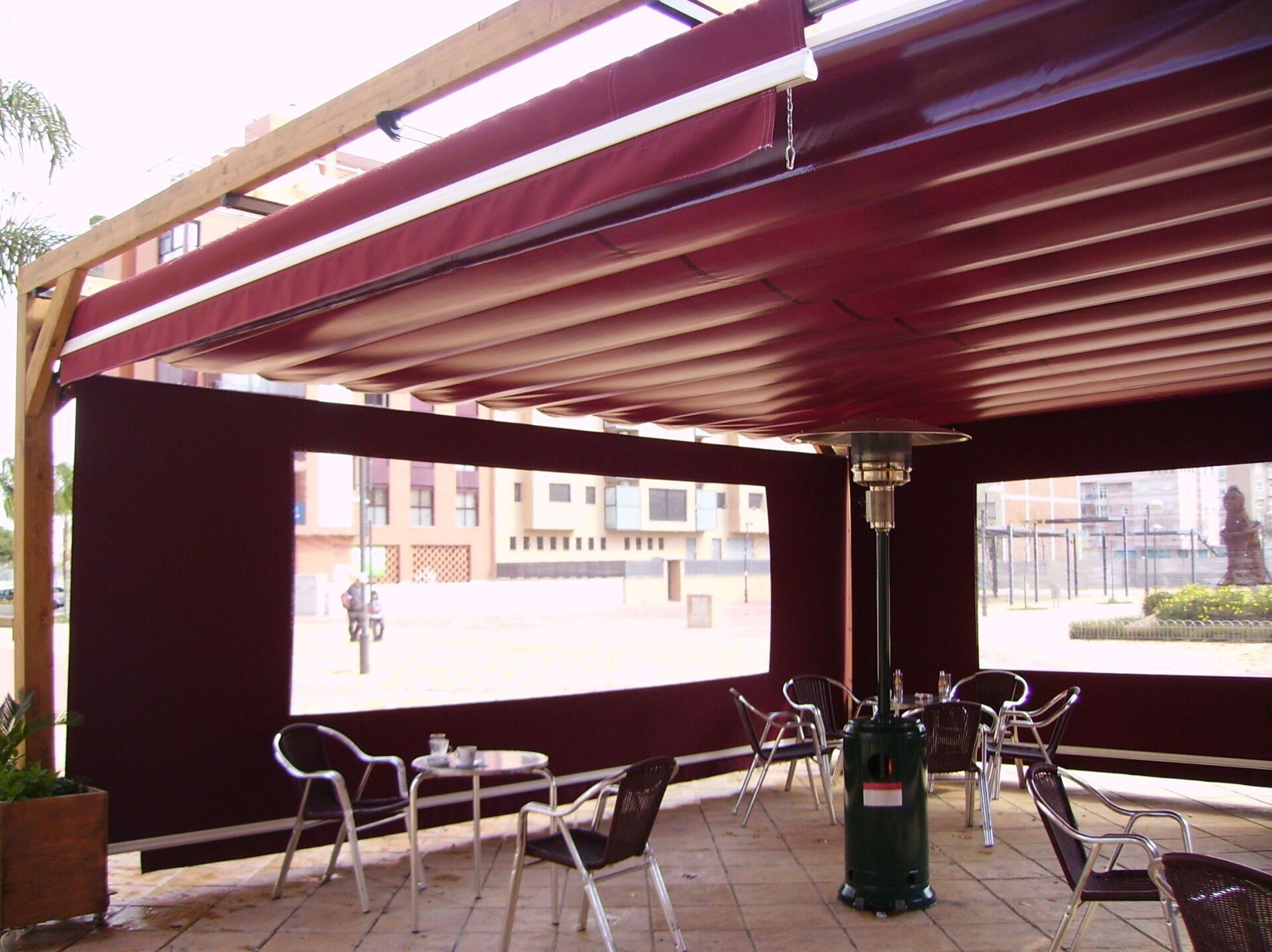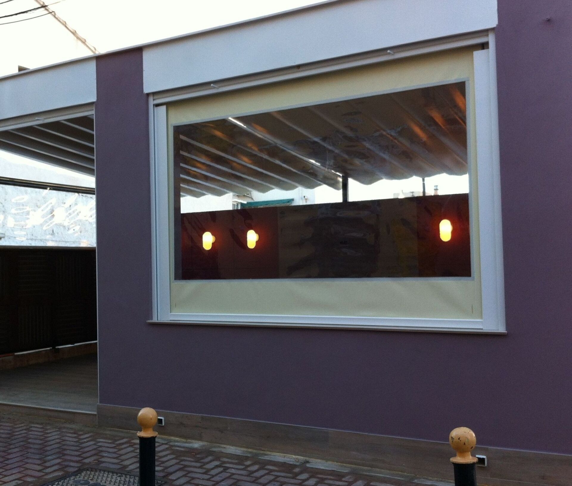 Cerramiento de terrazas para uso invernal con verticales cortavientos con ventana cristal que deja pasar luz y sol, al mismo tiempo tiene vistas al exterior