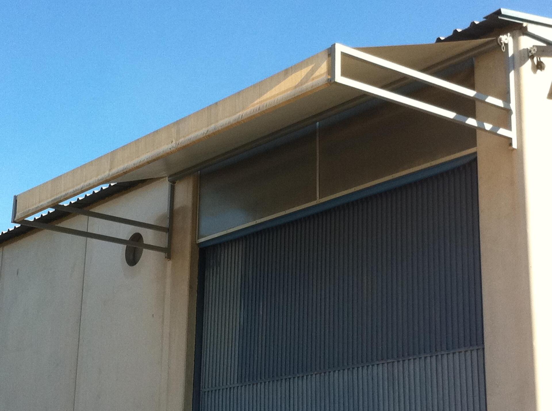 Toldo de brazo punto recto articulado con brazos de proyección del toldo desde la fachada hacia fuera sujeto a media altura entre el tubo de enrolle y el final de la caída del toldo, ideal para puertas, ventanas y balcones.